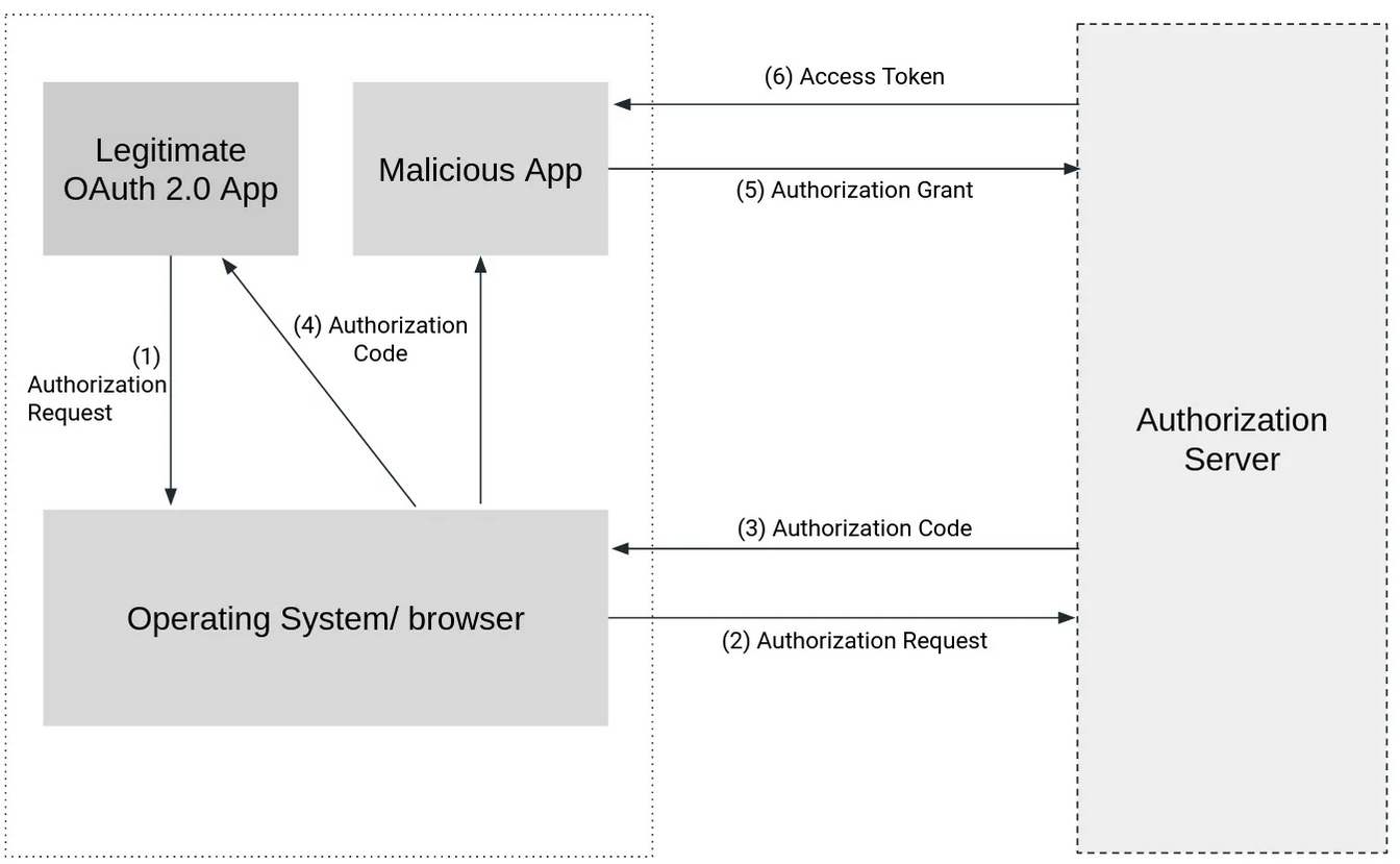 原生应用可能会利用自定义 URL 方案来获得系统重定向(例如 MyApp://),从而可能让恶意软件利用并拦截这个重定向而获得auth code。